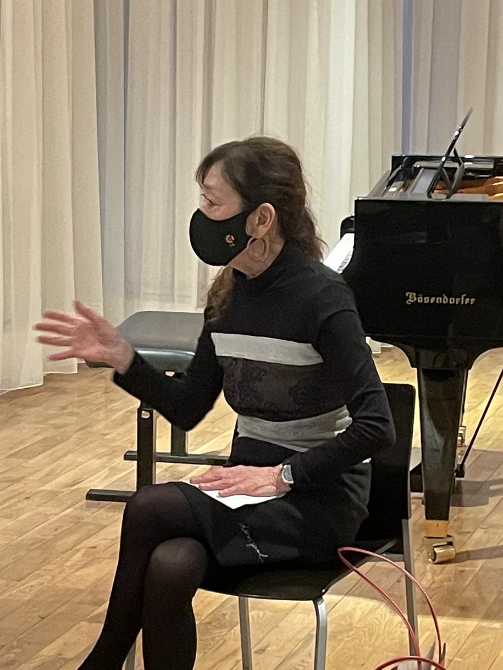 感染症防止の観点から参加者は7名のみ。一人の持ち時間は30分で、演奏は最大20分。演奏後にはコンサートを控えている方々へのワンポイント・アドバイス。