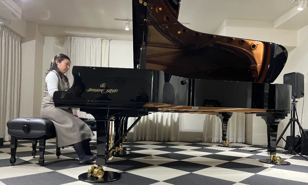 会場のShigeru Kawaiフルコンサートピアノの、鍵盤の感触・深い音色・響きに感動しながら、参加者全員がコンサート本番形式で演奏。そして、途中の休憩はロビーにてお茶とお菓子でひと息つきながら、とても和やかで楽しいひとときとなりました。